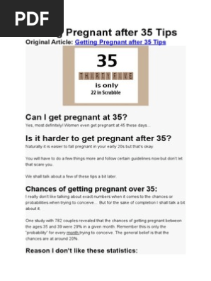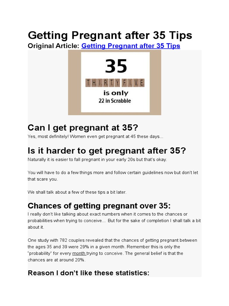 Women younger than 35 years old are usually told to try to get pregnant for a year before seeking help but a year is too long to wait past age 35. 4262012 A new government report finds a big increase in the number of women having two children after age 35 see end of page 6 in the report. Be sure youre educated about getting pregnant after 35.