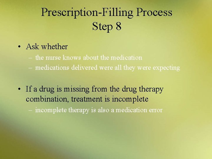 This procedure helps to eliminate confusion and errors of filling a prescription due to poor reading skills or misinterpreting poor handwriting. Receive and Review Prescription. The whole process seems so simple.