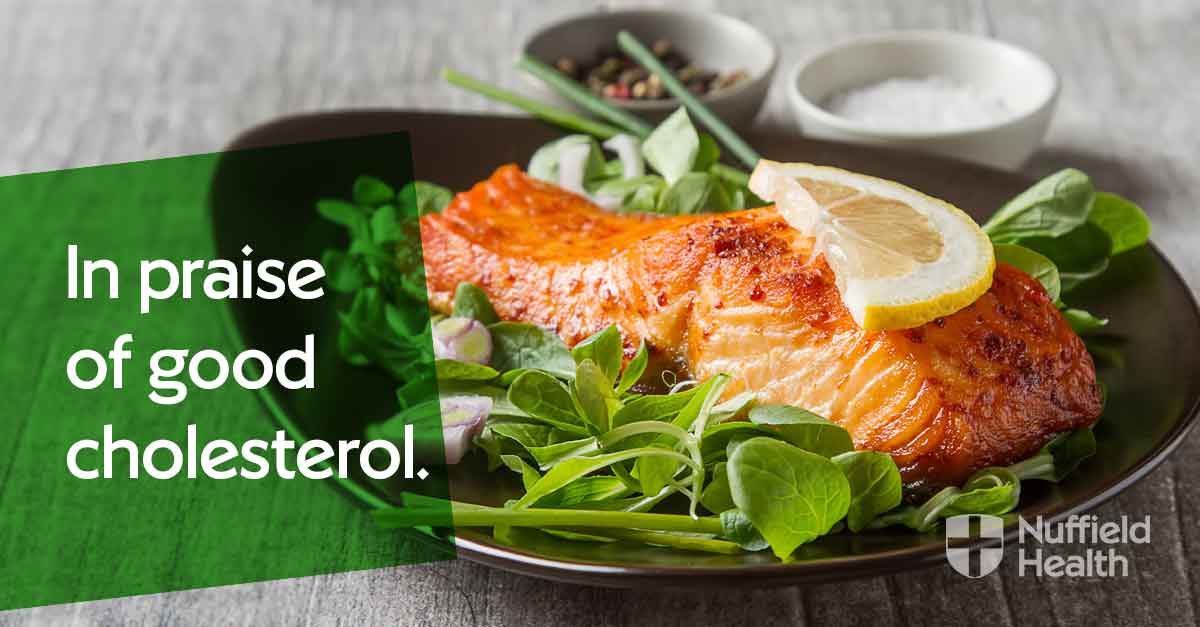 Unlike red meat salmon is a good source of healthy unsaturated fats that are good for cholesterol. Eating salmon can improve your good. Alcohol only in moderation.