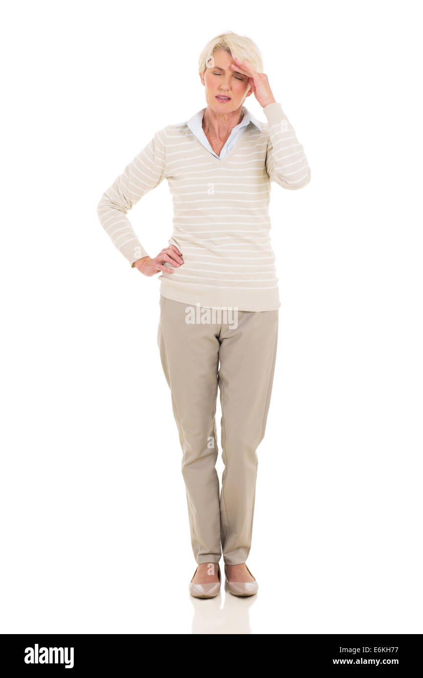 Mature Woman Having Headache Standing Isolated On White Background Stock Photo Alamy
