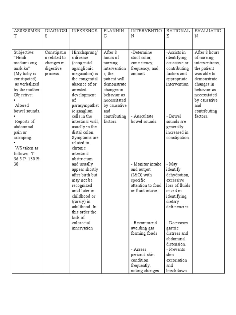 Constipation care plan. What to Consider in a Nursing Care Plan for Constipation 1. Constipation Constipation is a After 8 hours of Determine stool Assists in After 8 hours of related to very common nursing color consistency identifying nursing Hindi na ako decreased condition that interventions the frequency and causative or interventions the madalas dumumi dietary intake. Nursing Care Plan for Constipation.
