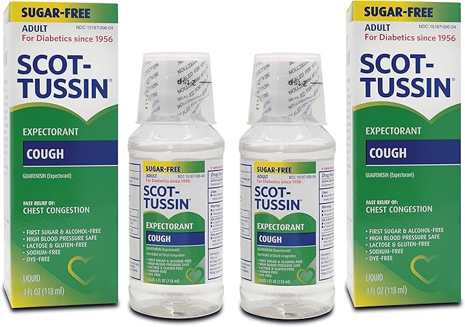Amazon Com Scot Tussin Expectorant Cough Syrup With Guaifenesin Sugar Free For Chest Congestion Relief 4oz Pack Of 2 Health Personal Care